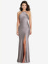 【NEW】【STYLE: 6853】ホルター コンバーチブル ストラップ バイアス スリップ ドレス 前面 スリット【COLOR: Cashmere Gray】【SIZE: 00-30W】