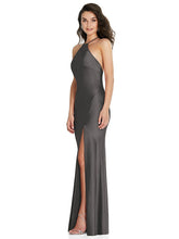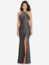 【NEW】【STYLE: 6853】ホルター コンバーチブル ストラップ バイアス スリップ ドレス 前面 スリット【COLOR: Caviar Gray】【SIZE: 00-30W】