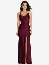 【NEW】【STYLE: 6854】Vネック コンバーチブル ストラップ バイアス スリップ ドレス 前面 スリット【COLOR: Cabernet】【SIZE: 00-30W】