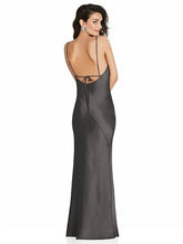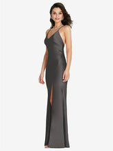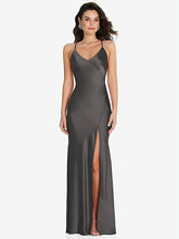 【NEW】【STYLE: 6854】Vネック コンバーチブル ストラップ バイアス スリップ ドレス 前面 スリット【COLOR: Caviar Gray】【SIZE: 00-30W】
