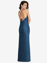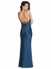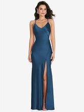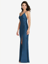 【NEW】【STYLE: 6854】Vネック コンバーチブル ストラップ バイアス スリップ ドレス 前面 スリット【COLOR: Dusk Blue】【SIZE: 00-30W】