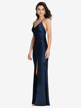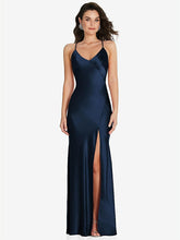 【NEW】【STYLE: 6854】Vネック コンバーチブル ストラップ バイアス スリップ ドレス 前面 スリット【COLOR: Midnight Navy】【SIZE: 00-30W】