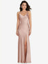 【NEW】【STYLE: 6854】Vネック コンバーチブル ストラップ バイアス スリップ ドレス 前面 スリット【COLOR: Toasted Sugar】【SIZE: 00-30W】