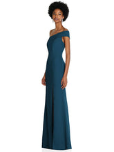 【NEW】【STYLE: 6858】非対称 オフショルダー カフ トランペット ガウン 前面 スリット【COLOR: Atlantic Blue】【SIZE: 00-30W】