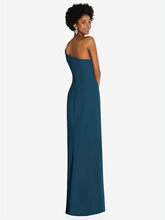 腰に挟まれて柔らかいトランペットのスカートに流れ込んで、この完璧なクレープガウンは、どんな形式的なOCASEのために美しいシルエットを作ります。肩から外れたネックラインには、外観を柔らかくするカフのディテールが強調されていますが、スカートのスリットはダンスフロアで楽しい夜を保証します。