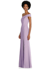 【NEW】【STYLE: 6858】非対称 オフショルダー カフ トランペット ガウン 前面 スリット【COLOR: Pale Purple】【SIZE: 00-30W】