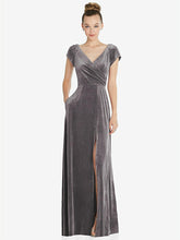 【NEW】【STYLE: 6862】キャップ スリーブ フェイク ラップ ベルベット マキシ ドレス ポケット付き【COLOR: Caviar Gray】【SIZE: 00-30W】