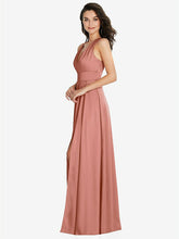 【NEW】【STYLE: 6863】Shirred 肩 Criss Cross Back Maxi ドレス 前面 スリット【COLOR: Desert Rose】【SIZE: 00-30W】