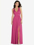 【NEW】【STYLE: 6863】Shirred 肩 Criss Cross Back Maxi ドレス 前面 スリット【COLOR: Tea Rose】【SIZE: 00-30W】