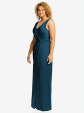 【NEW】【STYLE: 6864】フェイク ラップ ささやき サテン マキシ ドレス ドレープ チューリップ スカート【COLOR: Atlantic Blue】【SIZE: 00-30W】