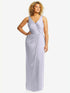【NEW】【STYLE: 6864】フェイク ラップ ささやき サテン マキシ ドレス ドレープ チューリップ スカート【COLOR: Silver Dove】【SIZE: 00-30W】