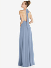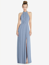 【NEW】【STYLE: 6865】ホルター バックレス マキシ ドレス クリスタル ボタン フリル プラケット【COLOR: Cloudy】【SIZE: 00-30W】