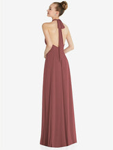 【NEW】【STYLE: 6865】ホルター バックレス マキシ ドレス クリスタル ボタン フリル プラケット【COLOR: English Rose】【SIZE: 00-30W】