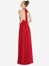 【NEW】【STYLE: 6865】ホルター バックレス マキシ ドレス クリスタル ボタン フリル プラケット【COLOR: Parisian Red】【SIZE: 00-30W】