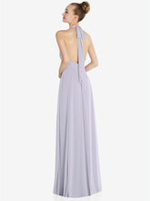 【NEW】【STYLE: 6865】ホルター バックレス マキシ ドレス クリスタル ボタン フリル プラケット【COLOR: Silver Dove】【SIZE: 00-30W】