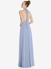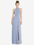 【NEW】【STYLE: 6865】ホルター バックレス マキシ ドレス クリスタル ボタン フリル プラケット【COLOR: Sky Blue】【SIZE: 00-30W】