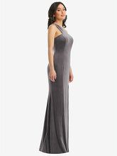 【NEW】【STYLE: 6867】ワンショルダー ベルベット トランペット ガウン 前面 スリット【COLOR: Caviar Gray】【SIZE: 00-30W】