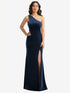 【NEW】【STYLE: 6867】ワンショルダー ベルベット トランペット ガウン 前面 スリット【COLOR: Midnight Navy】【SIZE: 00-30W】
