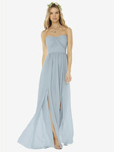 恋人のネックラインが特徴のこのフルレングスの花嫁介添人ドレスの見事なシルエットで、見事なシルエットでクラスを再定義します。シャーリングされたスカートのプリンセスシームのストラップレスドレーションボディスやスリットなどの遊び心のあるディテールは、魅力の陽気な空気を加えます。