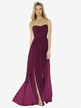 恋人のネックラインが特徴のこのフルレングスの花嫁介添人ドレスの見事なシルエットで、見事なシルエットでクラスを再定義します。シャーリングされたスカートのプリンセスシームのストラップレスドレーションボディスやスリットなどの遊び心のあるディテールは、魅力の陽気な空気を加えます。