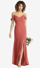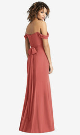 【NEW】【STYLE: 8193】オフザショルダー クロス クロス ボディス トランペット ガウン【COLOR: Coral Pink】【SIZE: 00-30W】