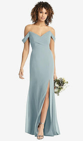 【NEW】【STYLE: 8193】オフザショルダー クロス クロス ボディス トランペット ガウン【COLOR: Morning Sky】【SIZE: 00-30W】