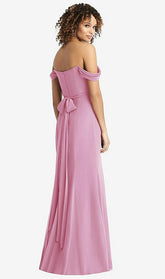 【NEW】【STYLE: 8193】オフザショルダー クロス クロス ボディス トランペット ガウン【COLOR: Powder Pink】【SIZE: 00-30W】