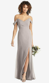 【NEW】【STYLE: 8193】オフザショルダー クロス クロス ボディス トランペット ガウン【COLOR: Taupe】【SIZE: 00-30W】