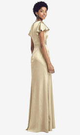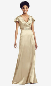 【NEW】【STYLE: 8197】フラッター 袖 ドレープ ラップ ストレッチ マキシ ドレス【COLOR: Banana】【SIZE: 00-30W】