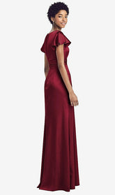 【NEW】【STYLE: 8197】フラッター 袖 ドレープ ラップ ストレッチ マキシ ドレス【COLOR: Burgundy】【SIZE: 00-30W】