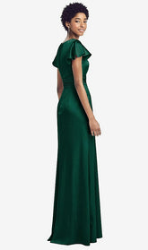 【NEW】【STYLE: 8197】フラッター 袖 ドレープ ラップ ストレッチ マキシ ドレス【COLOR: Hunter Green】【SIZE: 00-30W】