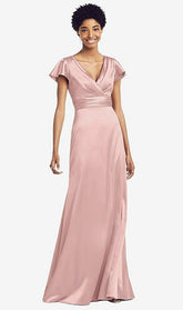 【NEW】【STYLE: 8197】フラッター 袖 ドレープ ラップ ストレッチ マキシ ドレス【COLOR: Rose - PANTONE Rose Quartz】【SIZE: 00-30W】