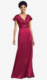 【NEW】【STYLE: 8197】フラッター 袖 ドレープ ラップ ストレッチ マキシ ドレス【COLOR: Valentine】【SIZE: 00-30W】