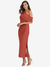 優雅でドレープされたネックラインは、このコンバーチブルのワンショルダースリップドレスにギリシャン風の優雅さを追加します。デリケートなLux Charmeuseファブリックは、魅力的なサイドスリットを備えた洗練されたシルエットと流れるミディスカートを形成します。
