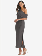 【NEW】【STYLE: 8203】ドレープ ワンショルダー コンバーチブル MIDI スリップ ドレス【COLOR: Caviar Gray】【SIZE: 00-30W】