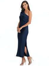 優雅でドレープされたネックラインは、このコンバーチブルのワンショルダースリップドレスにギリシャン風の優雅さを追加します。デリケートなLux Charmeuseファブリックは、魅力的なサイドスリットを備えた洗練されたシルエットと流れるミディスカートを形成します。