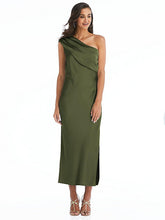 【NEW】【STYLE: 8203】ドレープ ワンショルダー コンバーチブル MIDI スリップ ドレス【COLOR: Olive Green】【SIZE: 00-30W】