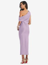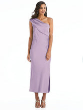 優雅でドレープされたネックラインは、このコンバーチブルのワンショルダースリップドレスにギリシャン風の優雅さを追加します。デリケートなLux Charmeuseファブリックは、魅力的なサイドスリットを備えた洗練されたシルエットと流れるミディスカートを形成します。