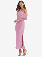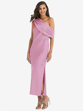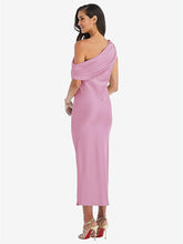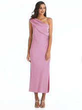 優雅でドレープされたネックラインは、このコンバーチブルのワンショルダースリップドレスにギリシャン風の優雅さを追加します。デリケートなLux Charmeuseファブリックは、魅力的なサイドスリットを備えた洗練されたシルエットと流れるミディスカートを形成します。