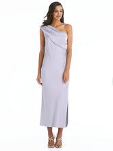 【NEW】【STYLE: 8203】ドレープ ワンショルダー コンバーチブル MIDI スリップ ドレス【COLOR: Silver Dove】【SIZE: 00-30W】