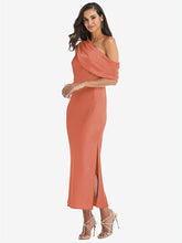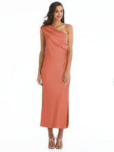 優雅でドレープされたネックラインは、このコンバーチブルのワンショルダースリップドレスにギリシャン風の優雅さを追加します。デリケートなLux Charmeuseファブリックは、魅力的なサイドスリットを備えた洗練されたシルエットと流れるミディスカートを形成します。