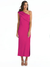 【NEW】【STYLE: 8203】ドレープ ワンショルダー コンバーチブル MIDI スリップ ドレス【COLOR: Think Pink】【SIZE: 00-30W】