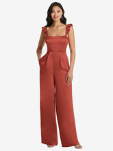 【NEW】【STYLE: 8206】フリル 袖 ネクタイバック ジャンプスーツ ポケット付き【COLOR: Amber Sunset】【SIZE: 00-30W】