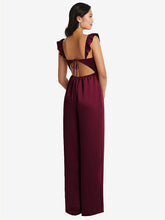 【NEW】【STYLE: 8206】フリル 袖 ネクタイバック ジャンプスーツ ポケット付き【COLOR: Cabernet】【SIZE: 00-30W】