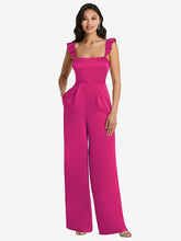 【NEW】【STYLE: 8206】フリル 袖 ネクタイバック ジャンプスーツ ポケット付き【COLOR: Think Pink】【SIZE: 00-30W】