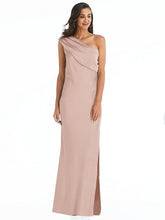 優雅でドレープされたネックラインは、このコンバーチブルのワンショルダースリップドレスにギリシャン風の優雅さを追加します。デリケートなLux Charmeuseファブリックは、地面に届く洗練されたシルエットと流れるマキシスカートを形成し、夜のイベントを正式に探しています。魅力的なサイドスリットは、余分なタッチを与えます。