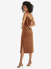 【NEW】【STYLE: 8212】非対称 ワン層 ベルベット MIDI スリップ ドレス【COLOR: Golden Almond】【SIZE: 00-30W】
