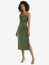 【NEW】【STYLE: 8212】非対称 ワン層 ベルベット MIDI スリップ ドレス【COLOR: Sage】【SIZE: 00-30W】