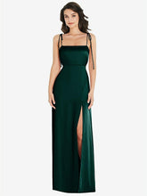 【NEW】【STYLE: 8214】スキニー タイショルダー サテン マキシ ドレス 前面 スリット【COLOR: Evergreen】【SIZE: 00-30W】