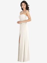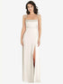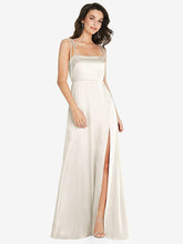 【NEW】【STYLE: 8214】スキニー タイショルダー サテン マキシ ドレス 前面 スリット【COLOR: Ivory】【SIZE: 00-30W】
